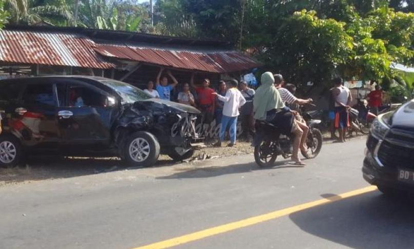 Akibat peristiwa tersebut 3 mobil yang terlibat lakalantas mengalami rusak berat di bagian depan mobil. (Rns)