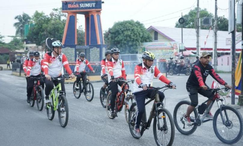Pelaksanaan Fun Bike yang diikuti oleh OPD, Personil TNI-Polri, Ketua TP PKK Kabupaten Asahan beserta pengurus, Ketua Persit Candra Kirana Cabang XXXV Dim 0208/Asahan beserta pengurus, dan beberapa komunitas sepeda ini untuk memeriahkan HUT ke-77 RI.