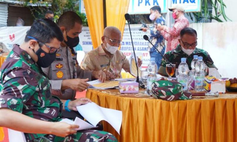 Usai mengikuti Zoom Meeting bersama Kapolri Bupati Asahan bersama dengan Kapolres Asahan, Danlanal TBA, Mewakili Dandim 0208/AS dan undangan lainnya melakukan peninjauan pelaksanaan Vaksinasi kepada kelompok usia Rentan (lansia) di Desa Sipaku Area.