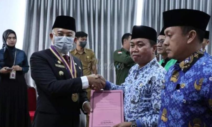 BENGKULU, eWarta.Co -- Sebanyak 14 Pejabat Eselon II dan 1 Orang Pejabat Eselon III dilantik dan diambil sumpah jabatannya oleh Bupati Bengkulu Selatan Gusnan Mulyadi di Aula Balai Sekundang pada Senin Sore (03/10/2022).