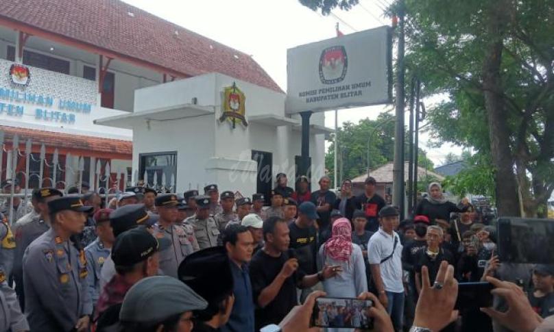 "Kami mendesak KPU Kabupaten Blitar untuk benar-benar bersikap netral. KPU tidak boleh memihak kepada salah satu paslon, dan pelanggaran-pelanggaran yang terjadi selama ini harus segera diperbaiki," tegas koordinator aksi Jaka Prasetya, di depan kantor KPU Kabupaten Blitar. ( Mht)