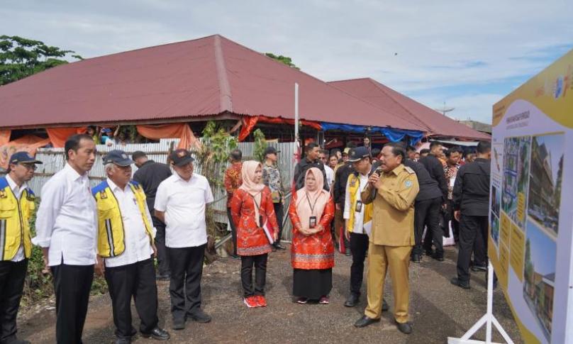 Kunjungan Kepala Negara tersebut dalam rangka meninjau langsung rancangan revitalisasi pasar pasca kebakaran pada April 2021 yang lalu.