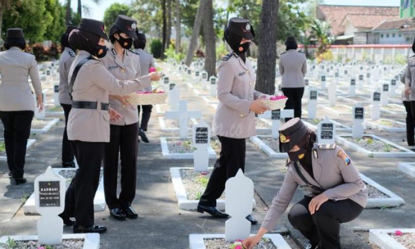 "Ziarah di Taman Makam Pahlawan (TMP) tersebut dipimpin langsung oleh Wakapolres Blitar Kota Kompol Eusebia Torimtubun SH MH dan diikuti seluruh personel Polwan Polres Blitar Kota