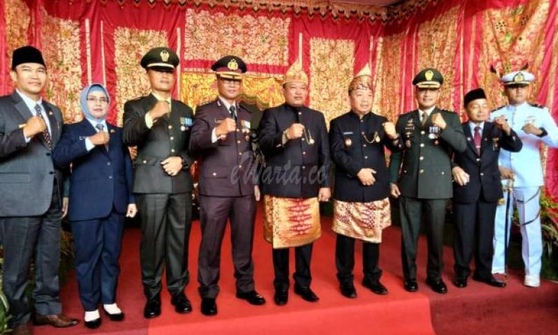 Seluma, eWARTA.co - Puncak peringatan Hari Ulang Tahun (HUT) 19 Kabupaten Seluma ditandai dengan upacara pengibaran bendera merah putih yang digelar di halaman Kantor Bupati Seluma, Senin pagi ini (23/5/2022). Upacara yang dihadiri Forkompinda, para pejabat, undangan dan seluruh ASN di lingkungan Pemkab Seluma dengan inspektur upacara Bupati Seluma, Erwin Octavian.