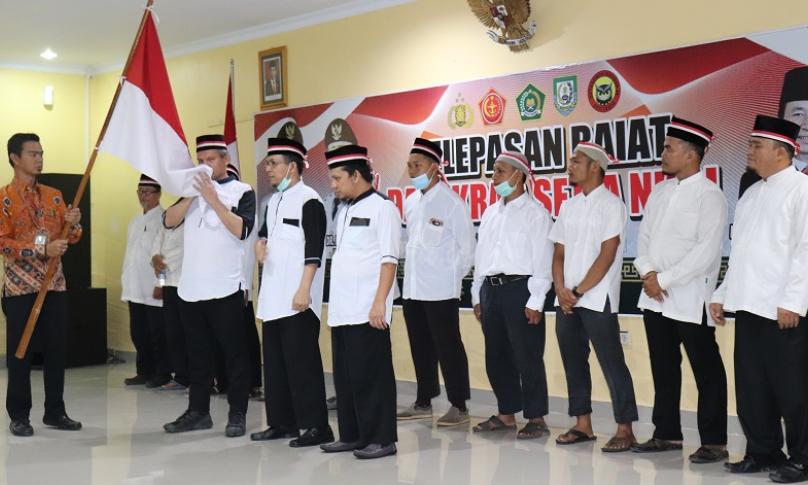 ‘’Ini sejalan dengan program unggulan Kemenag yakni Penguatan Moderasi Beragama (PMB). Karenanya dengan lepasnya Baiat dan telah berikrar setia kepada NKRI, saya mengajak mari kita jaga kapal besar ini, rumah kita Bangsa Indonesia agar selalu damai, tentram berdasarkan cita-Pancasila dan UUD 1945,’’ pinta Kakanwil.