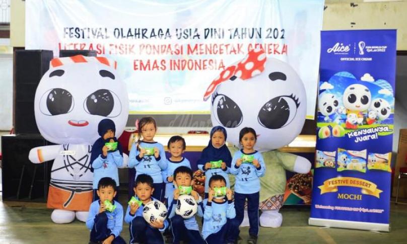 Bersama dengan Kemenpora dan para pegiat olahraga, Aice mendukung perhelatan ini dengan memberikan ribuan es krim Aice Mochi kepada para peserta, plus bola ke 50 sekolah yang berpartisipasi. Perusahaan yang memproduksi es krim dalam kemasan resmi di Piala Dunia FIFA Qatar 2022 ini juga menghadirkan keceriaan bagi anak dengan kehadiran ikon Aice Mochi Baby.