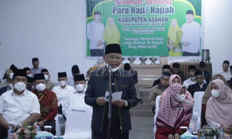 Asahan, eWARTA.co - Pemerintah Kabupaten ( pemkab) Asahan menyambut kepulangan jamaah Haji asal Kabupaten Asahan yang tergabung dalam gelombang 2 kloter 8, di Gedung Tahfidz, Minggu (31/7/2022) dini hari.