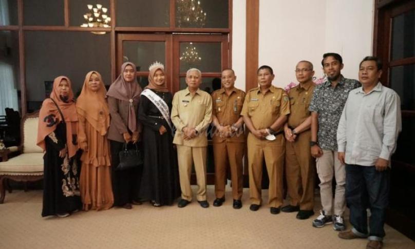 ASAHAN, eWARTA.co -- Bupati Asahan H. Surya, BSc didampingi Asisten Pemerintahan dan Kesra Buwono Prawana, SIP, MSi, Kadis Porapar, Kadis Kominfo Syamsuddin, SH, MM menerima kunjungan Putri Hijab Indonesia Sumatera Utara (Sumut) Putri Fadillah Manik, bertempat di Ruang kerja Bupati Asahan, Selasa (06/09/2022).