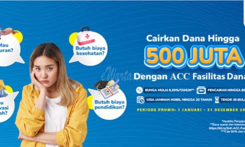 Fasilitas Dana ACC bukan KTA (Kredit Tanpa Agunan). Untuk dapat mengajukan pinjaman dana cepat cair hingga ratusan juta rupiah, ACC hanya menerima jaminan BPKB Mobil.