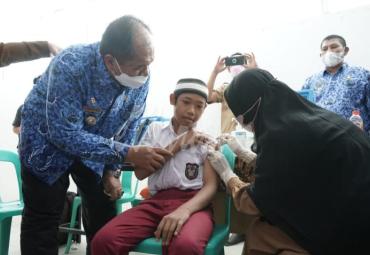 Wakil Bupati Kembali Tinjau Pelaksanaan Vaksinasi Usia 06 - 11 Tahun di Kecamatan Pulo Rakyat