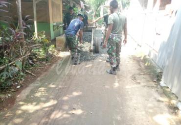 Satgas TMMD dan Warga Gotong Royong Lakukan Pengecoran Jalan