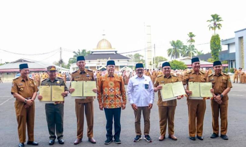 BENGKULU, ewarta.co -- Gubernur Bengkùlu Rohidin Mersyah menyaksikan penandatanganan secara simbolis perjanjian kerja sama (PKS) antara Perum Bulog Bengkulu dengan Sekretariat Daerah dan OPD Lingkungan Pemprov Bengkulu di halaman apel kantor Gubernur Bengkulu Selasa (10/10/2023) Pagi.