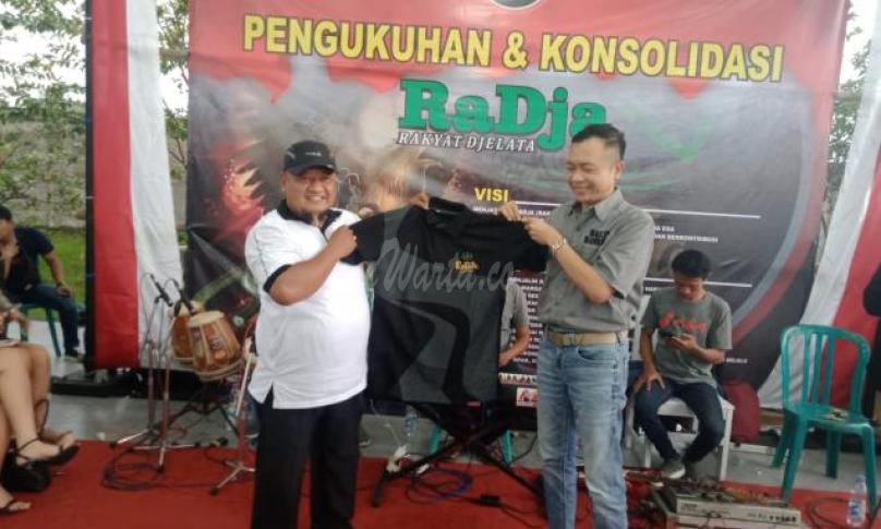 Secara simbolis Ketua Organisasi Radja memberikan Kaos yang berlogo Radja Rakyat Jelata. (Bas)