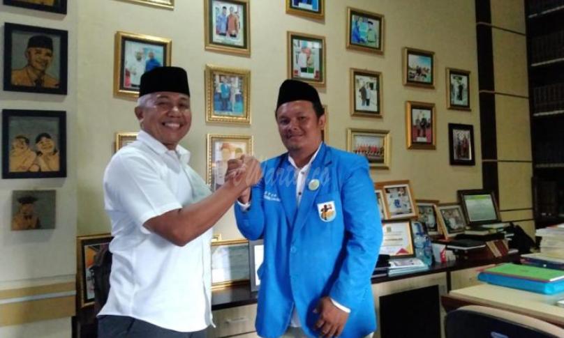 Rektor Unihaz Dr Ir Yulfiperius bersama stafnya menyambut langsung Ketua KNPI bersama jajarannya.