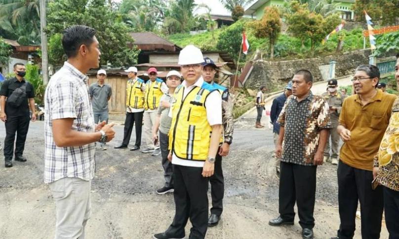 Gubernur Rohidin Mersyah menyampaikan ruas Desa Batu Beriang - Desa Pematang Tiga kecamatan Pematang Tiga kabupaten Bengkulu Utara sempat terhenti pembangunannya sejak 2019 lalu.