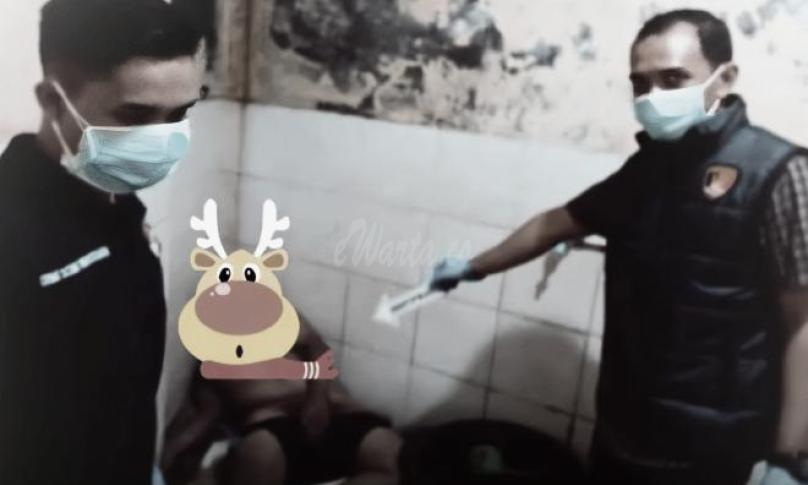Mengira kamar mandi sedang digunakan, saksi kemudian kembali ke kamarnya dan menunggu hingga pintu WC terbuka. Namun hingga sekitar pukul 08.00 WIB, pintu kamar mandi tersebut masih dalam kondisi terkunci.