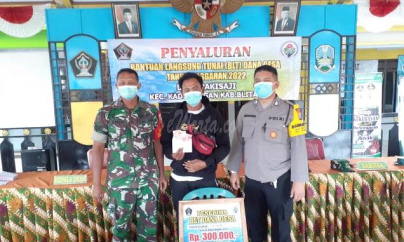 Blitar, eWARTA.co -- Babinsa Koramil Tipe B 0808/10 Kademangan Kodim 0808/Blitar Serka Kanapi bersama Bhabinkamtibmas selalu bersinergi, melaksanakan kegiatan pendampingan penyaluran Bantuan Langsung Tunai Dana Desa ( BLT DD ) kepada warga masyarakat kurang mampu, yang terdampak pandemi Covid -19 di wilayah binaannya.