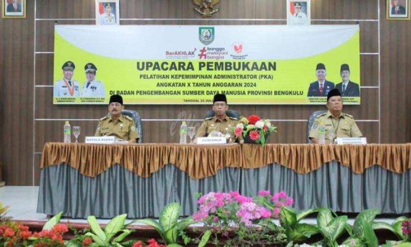BENGKULU, eWarta.co -- Asisten III Setda Bengkulu Bidang Administrasi Umum, Nandar Munadi, membuka secara resmi Pelatihan Kepemimpinan Administrator (PKA) Angkatan X tahun 2024 di Lingkungan Pemprov Bengkulu, di Aula Rafflesia lantai II BPSDM Provinsi Bengkulu, Senin (22/7/2024).