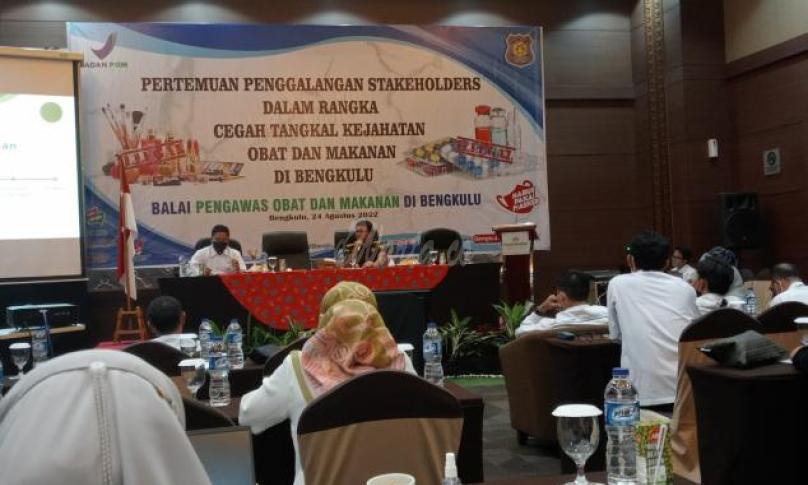 BENGKULU, eWARTA.co -- Balai Pengawas Obat dan Makanan (BPOM) Bengkulu mengadakan Pertemuan Penggalangan Stakeholders di Hotel berbintang di Kota Bengkulu, Rabu (24/8).