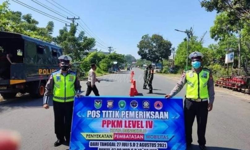 BENGKULU,eWARTA.co -- Pos Penyekatan di 2 titik lokasi di Kota Bengkulu setelah adanya penerapan PPKM level IV sepenuhnya dilaksanakan dengan kebijakan Pemda Kota Bengkulu.