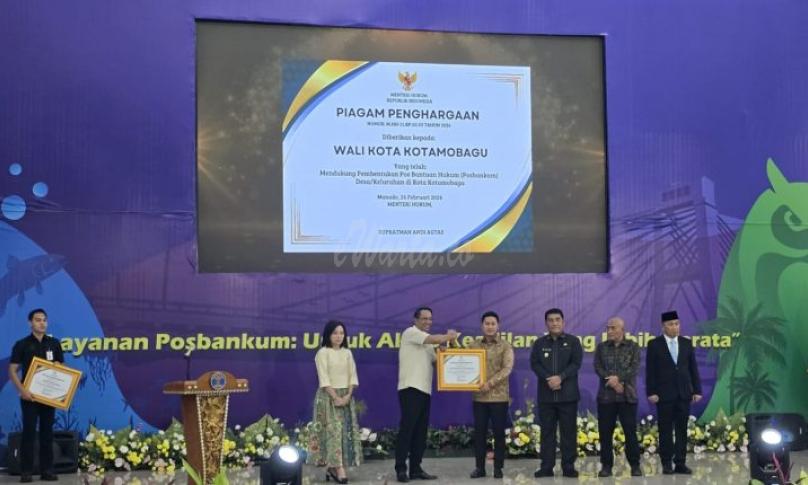 Pada kesempatan tersebut, Pemerintah Kota Kotamobagu menerima penghargaan langsung dari Menteri Hukum Republik Indonesia atas dukungan dan komitmen dalam pembentukan Pos Bantuan Hukum (Posbakum) di tingkat desa dan kelurahan. Penghargaan tersebut diserahkan oleh Menteri Hukum RI yang didampingi oleh Gubernur Sulawesi Utara.