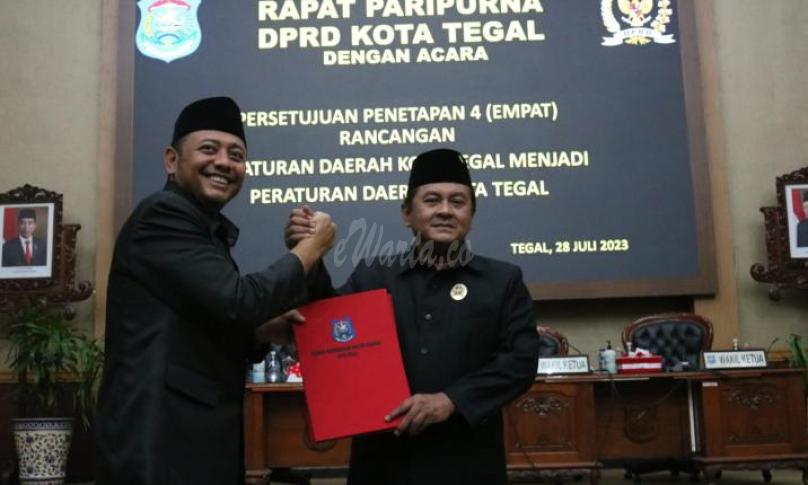 TEGAL, ewarta.co -- Empat Rancangan Peraturan Daerah (Raperda) disetujui enam Fraksi DPRD untuk ditetapkan menjadi Peraturan Daerah (Perda) dalam Rapat Paripurna Penetapan Empat Raperda Kota Tegal menjadi Perda Kota Tegal di Ruang Paripurna DPRD Kota Tegal, Jum'at (28/7/2023) di Ruang Paripurna DPRD Kota Tegal.