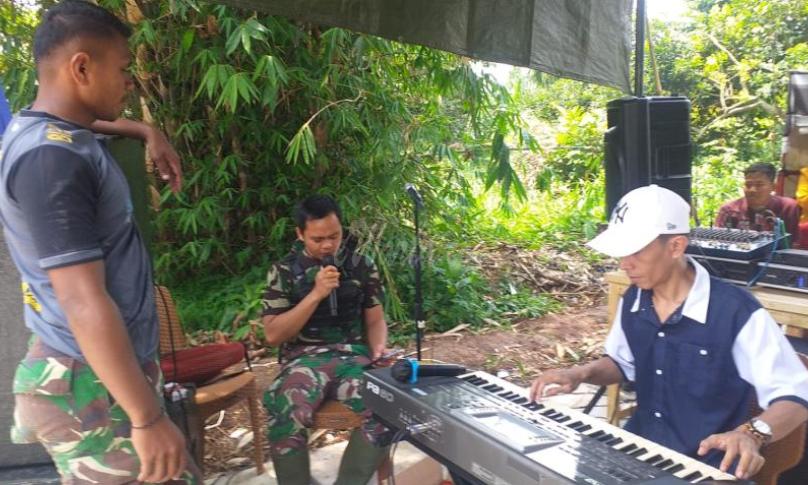 DEPOK,eWARTA.co -- Dalam upaya menjalin keakraban dengan warga, Satgas TMMD Ke-112 tahun 2021 Kodim 0508/Depok menghibur warga dilokasi TMMD dengan bernyanyi diiringi organ tunggal dalam acara syukuran HUT TNI Ke-76 di lokasi pengecoran jalan RT02/05' Kelurahan Pengasinan, Kecamatan Sawangan, Depok, Selasa, (05/10/21).