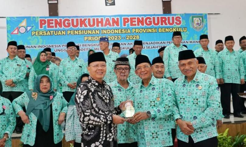 BENGKULU, ewarta.co -- Gubernur Bengkulu Rohidin Mersyah mengukuhkan kepengurusan perhimpunan Persatuan Pensiunan Indonesia (PPI) Provinsi Bengkulu periode 2023 hingga 2028 di salah satu hotel di Kota Bengkulu, Selasa (10/1).