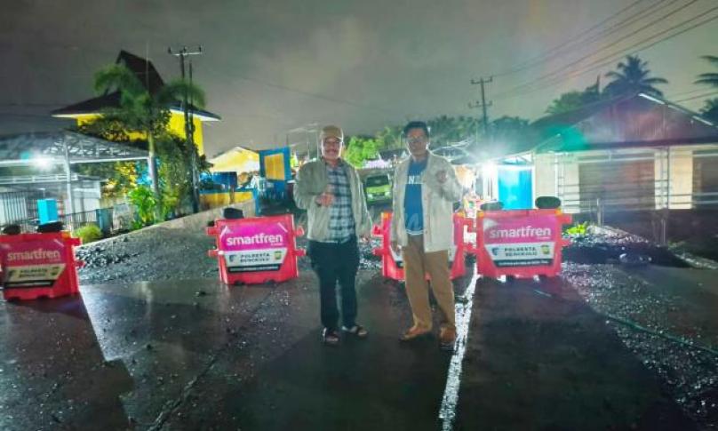 Dalam suasana gelap di tengah rintik hujan, Kepala Pelaksana Badan Penanggulangan Bencana Daerah (BPBD) Kota Bengkulu I Made Ardana, didampingi Plt. Kepala Dinas Kominfo Kota Bengkulu Achrawi, dan Kasatpol PP Kota Bengkulu Sahat Situmorang, terlihat di beberapa titik yang rawan bencana.