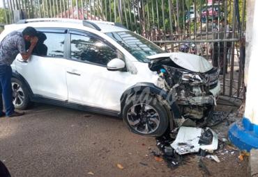 Diduga Mengantuk, Mobil Warga Seluma Hantam Gerbang UNIB