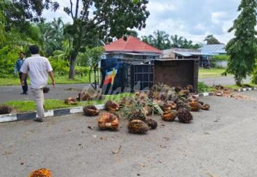 Lepas Roda Depan, Mobil angkut TBS Sawit Terguling