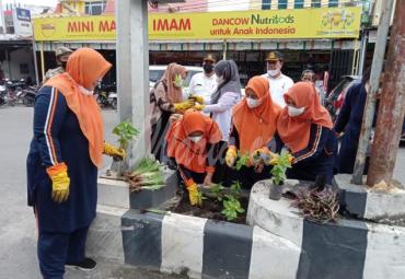 Ketua TP. PKK Kabupaten Tanam Bunga di Sepanjang Jalan Kota Kisaran