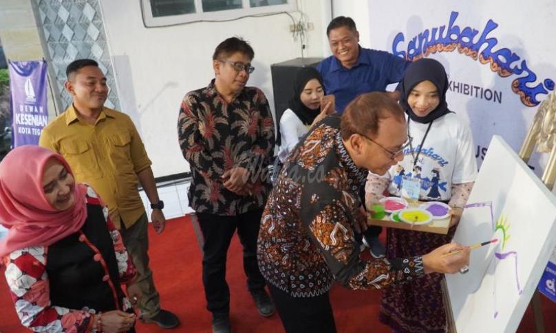 KOTA TEGAL, eWarta.co -- Wali Kota Tegal, Dedy Yon Supriyono secara resmi membuka Pameran Seni Rupa Tegal Art Festival yang bertajuk "Sanubahari" di Gedung Lanal Kota Tegal, Sabtu (23/8/2025) sore.