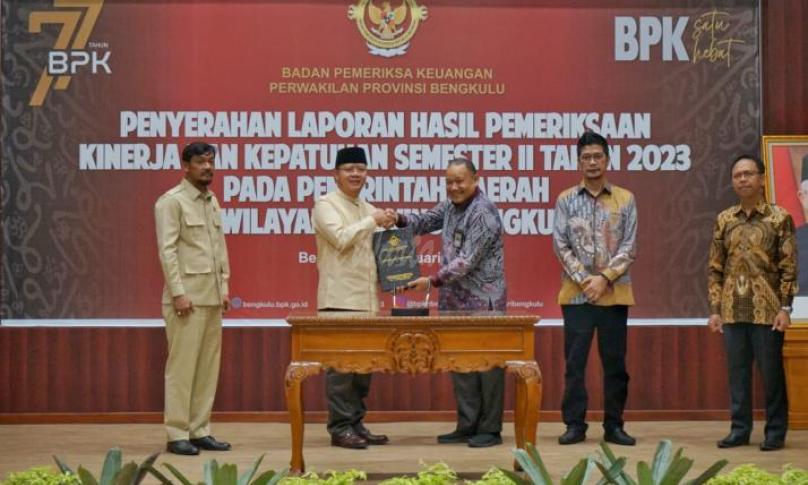 Di sisi lain, Kepala Perwakilan BPK Provinsi Bengkulu Muhamad Toha Arafat menjelaskan, Penyerahan LHP Kinerja dan Kepatuhan Semester II Tahun 2023 pada Pemerintah Daerah terdiri dari lima entitas pemeriksaan, yaitu Provinsi Bengkulu, Kota Bengkulu, Kabupaten Rejang Lebong, Kabupaten Seluma, dan Kabupaten Bengkulu Selatan.