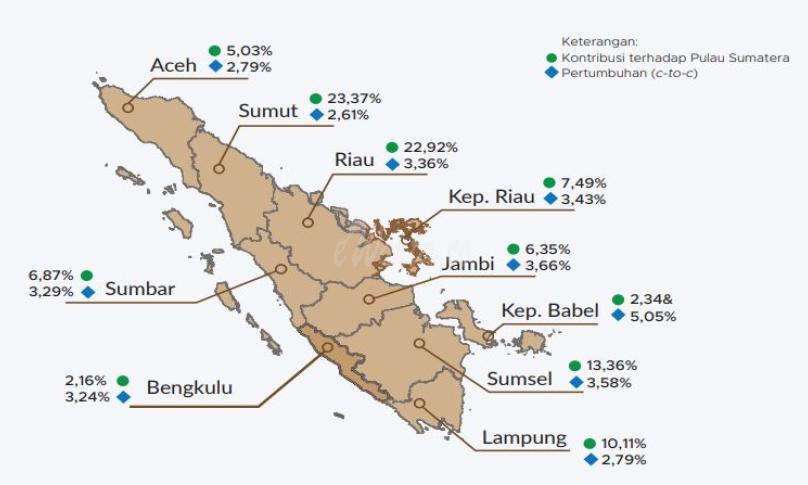 Ekonomi di Pulau Sumatera pada Tahun 2021 tumbuh sebesar 3,18 persen, dengan kontribusi Provinsi Bengkulu terhadap PDRB Pulau Sumatera sebesar 2,16 persen.