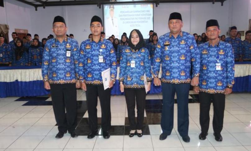 Wali Kota Tegal dalam sambutanya yang dibacakan oleh Pj. Sekda Kota Tegal, mengucapkan selamat kepada PNS formasi tahun 2021 yang telah menerima SK dan baru saja disumpah.