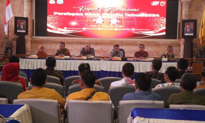 TEGAL, ewarta.co -- Wali Kota Tegal, Dedy Yon Supriyono memimpin langsung Rapat Koordinasi Persiapan Kirab Pemilu Tahun 2024 di Ruang Adipura Balai Kota Tegal, Selasa (7/11) siang.