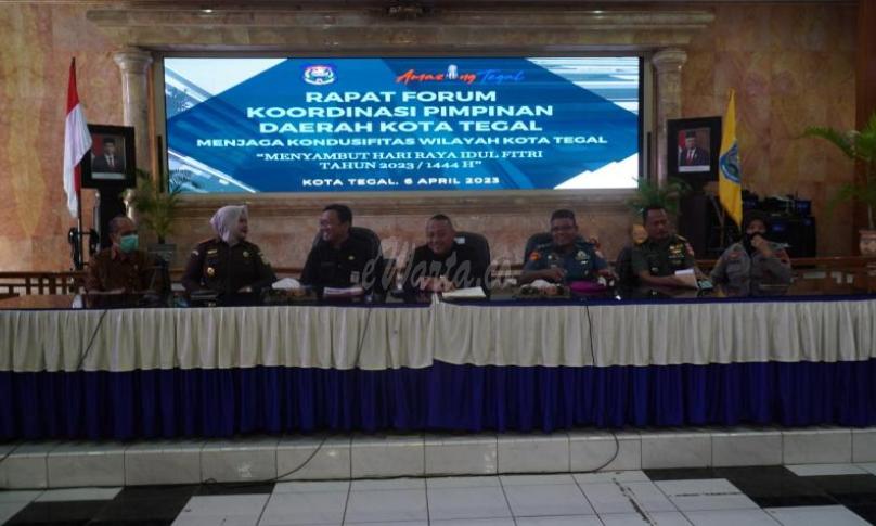 Hal tersebut mengemuka saat Rapat Forum Koordinasi Pimpinan Daerah Kota Tegal menyambut Hari Raya IdulFitri tahun 2023 / 1444 Hijriyah berlangsung di Ruang Adipura Balai Kota Tegal, Kamis (6/4) siang.