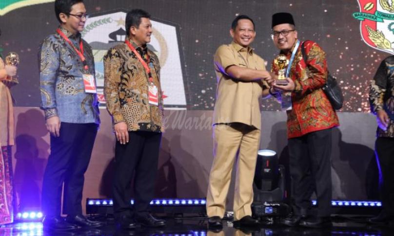 Penghargaan UHC diberikan langsung oleh Menteri Dalam Negeri (Mendagri) M Tito Karnavian kepada Sekda Brebes Ir Djoko Gunawan MT di Balai Sudirman Jakarta, Selasa (14/3/2023).
