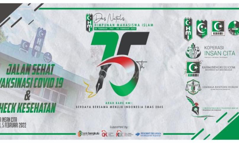 BENGKULU,eWARTA.co -- Majelis Wilayah (MW) KAHMI Provinsi Bengkulu Sabtu (5/2/22) menggelar vaksinasi massal covid-19. Kegiatan vaksinasi massal itu digelar dalam rangka Dies Natalis Himpunan Mahasiswa Islam (HMI) ke-75 tahun, yang diperingati setiap tanggal 5 Februari.