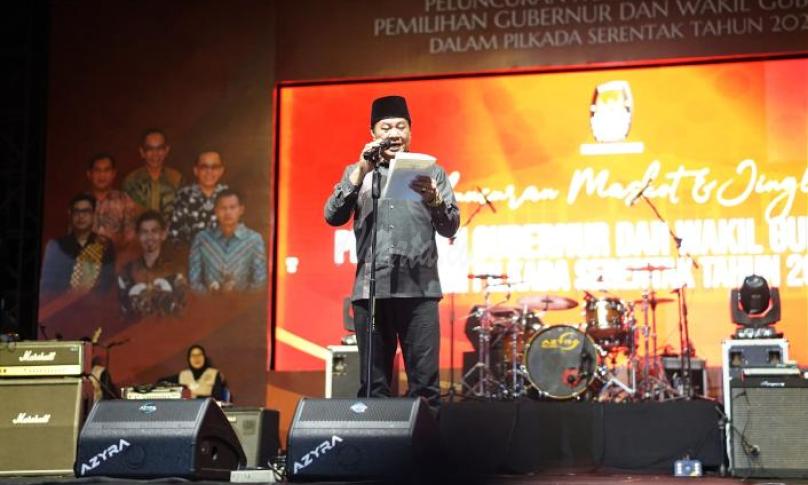 Launching tahapan pemilihan kepala daerah (Pilkada) berlangsung sangat meriah dengan penampilan Band Jamrud dan Bakardi.