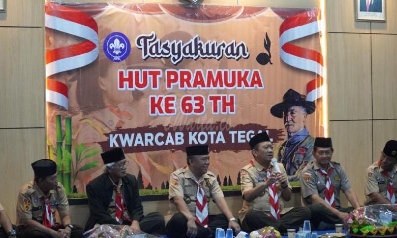 Ketua Kwarcab Kota Tegal, Muhamad Jumadi dalam sambutannya menyampaikan bahwa Tasyakuran HUT ke-63 Pramuka merupakan momentum yang luar biasa bagi Kwarcab Kota Tegal, karena dengan kesederhanaan, bisa berkumpul dan bersilaturahim bersama dalam rangka memperingati rangkaian HUT Pramuka ke-63.
