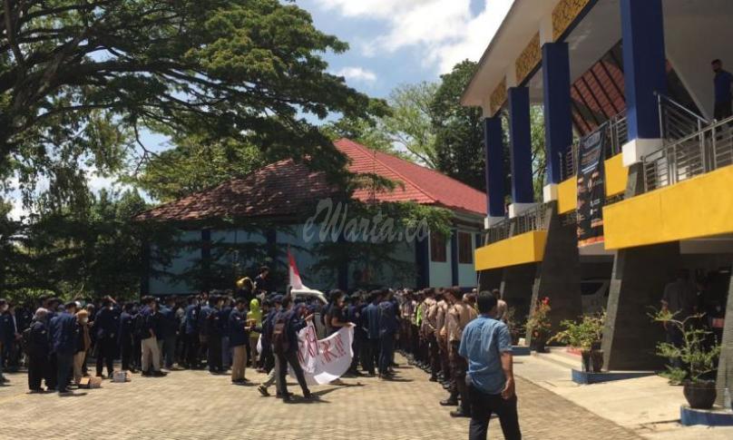 Unjuk rasa yang dilakukan massa yang terdiri dari perwakilan mahasiswa lintas program studi di halaman Dekan Fakultas Hukum UNIB sempat memanas.