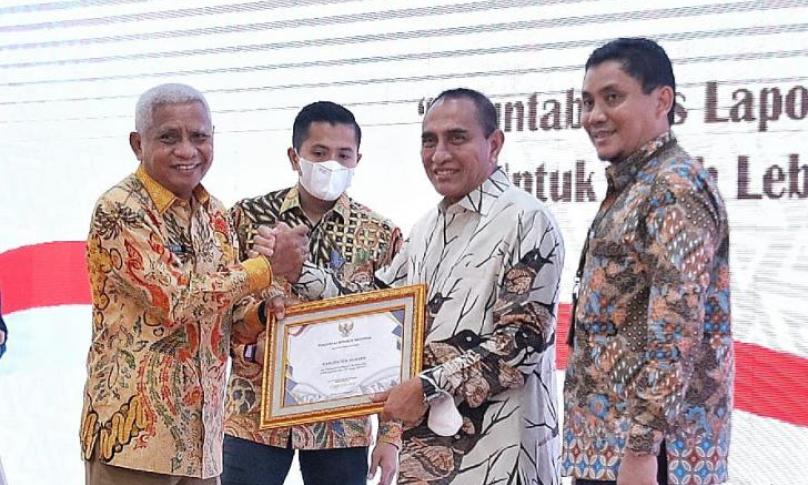 ASAHAN, eWARTA.co -- Penghargaan tersebut diserahkan langsung oleh Gubernur Sumatera Utara Edy Rahmayadi dalam Rakor Pemerintah Daerah dan Unit Akuntansi Pembantu Pengguna Anggaran Wilayah 2022 di Sumut, di Aula Tengku Rizal Nurdin, Kediaman Dinas Gubernur, Jalan Jend Sudirman Nomor 41, Medan, Kamis (3/11).