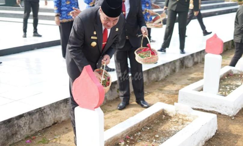 BENGKULU, ewarta.co -- Wakil Gubernur Bengkulu Dr H Rosjonsyah menjadi Inspektur Upacara Peringatan Hari Pahlawan di Makam Pahlawan Balai buntar Bengkulu, Jumat (10/11/2023).