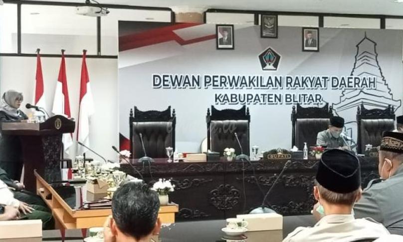 Ketua DPRD Kabupaten Blitar Suwito Saren Satoto pimpin langsung Rapat Paripurna didampingi tiga wakilnya dan dihadiri Bupati Blitar Rini Syarifah, Sekretaris Daerah (Sekda) Kabupaten Blitar Izul Marom beserta jajarannya tersebut merupakan agenda lanjutan dari Rapat Paripurna yang digelar pada Kamis (23/06/2022) malam.