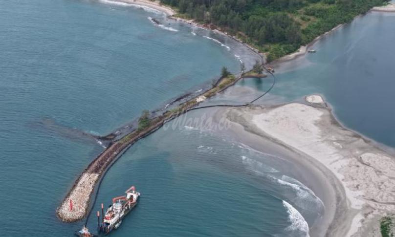 Ia menambahkan bahwa hasil pengerukan diarahkan ke area abrasi dengan menggunakan pipa terapung (floating pipe) yang tersambung dengan HDP pipe sepanjang 1 kilometer. Seluruh proses pemindahan material berjalan sesuai rencana.