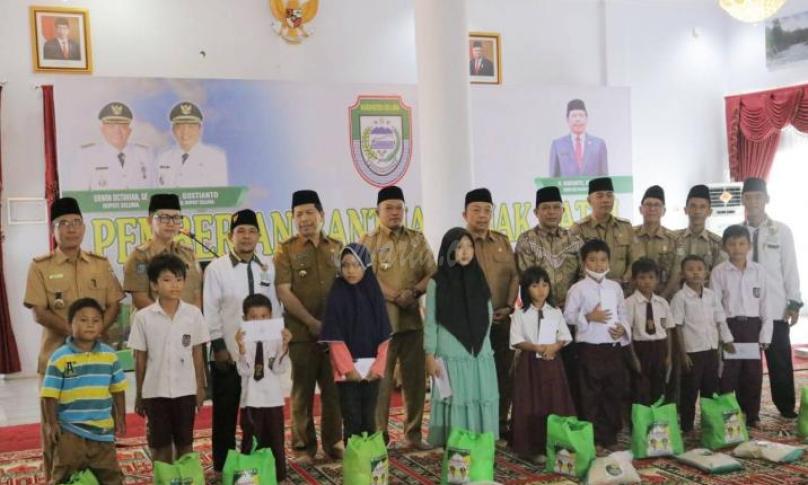 Seluma, eWARTA.co - Bupati Seluma Erwin Octavian, SE bersama Wakil Bupati Seluma Drs. Gustianto dan Sekda Kabupaten Seluma H. Hadianto, SE, MM, M.Si serta Ketua Baznas Seluma Andi Sunarto, S.Pd memberi bantuan dan santunan kepada anak yatim dan pakir miskin serta yasinan bersama di Gedung Serasan Seijoan Kabupaten Seluma, Senin (6/06/2022).
