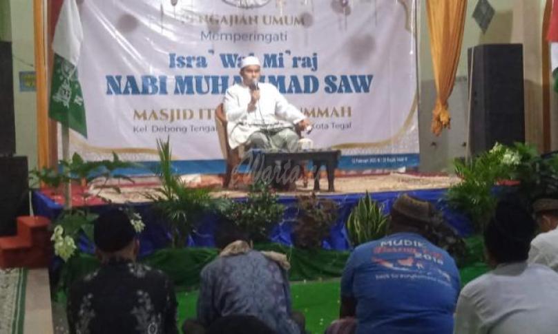 TEGAL, eWarta.co -- Masjid Ittihadul Ummah Debong Tengah menggelar peringatan Isra dan Miraj Nabi Besar Muhammad SAW pada Minggu (12/2/2023) malam. Pembicara dalam pengajian peringatan yakni Habib Ahmad bin Abdullah Al Athos dari Kaligayam, Kabupaten Tegal.