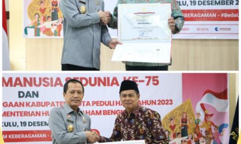 Berdasarkan Keputusan Menteri Hukum dan Hak Asasi Manusia Republik Indonesia Nomor M.HH-03.HA.02.01.01 Tahun 2023 Tanggal 15 November 2023 tentang Penetapan Kabupaten/Kota Peduli Hak Asasi Manusia Pada Tahun 2023. Terdapat 2 Kabupaten/Kota di Provinsi Bengkulu penerima penghargaan Peduli HAM yaitu Kota Bengkulu dan Kabupaten Bengkulu Selatan.